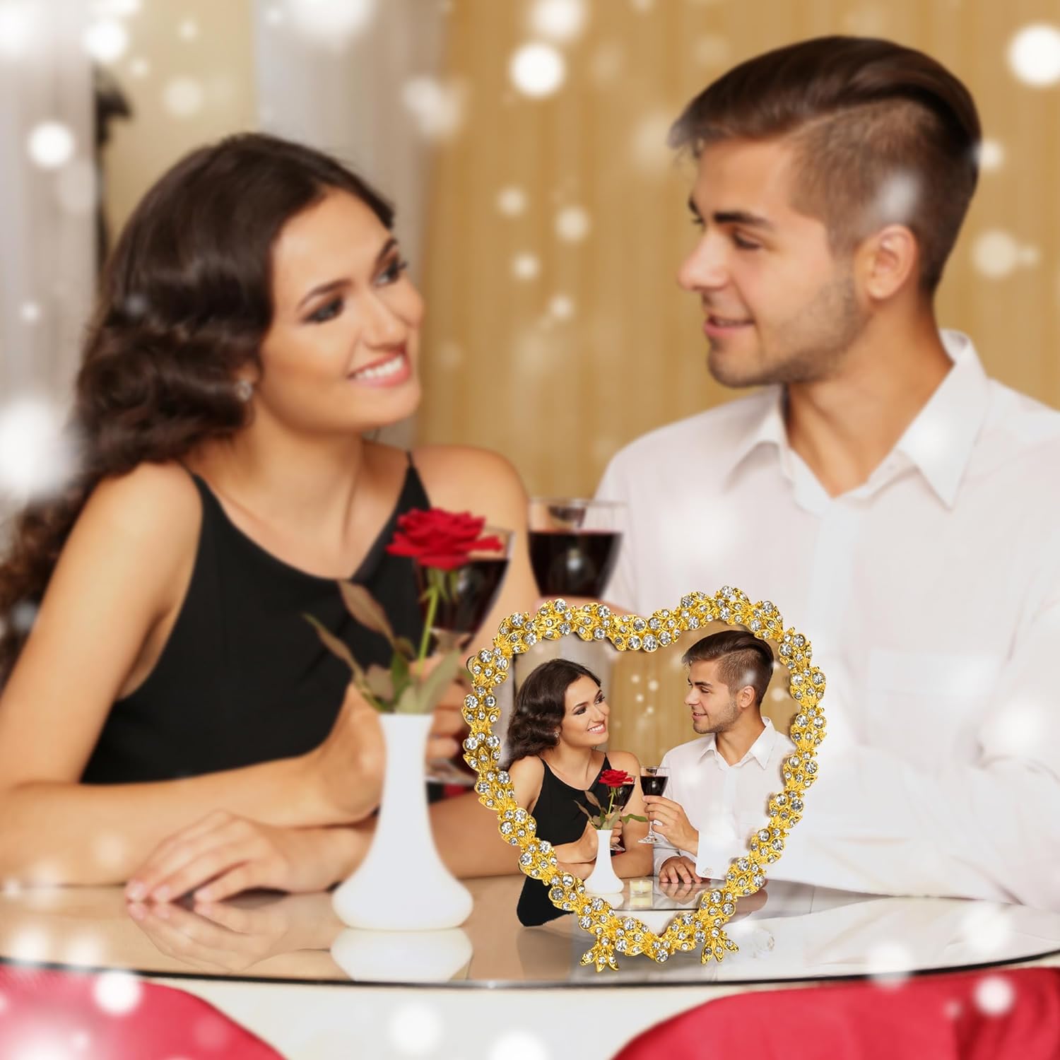 KENZY GIFTS Heart Shaped Wedding Picture Frames for Couple - Beaded Crystal 4x4 Picture Frame – Engagement Gift, Wedding Gift for newlyweds - Fits 3.5x3.5 photo - Valentine Picture Frame, (Gold)