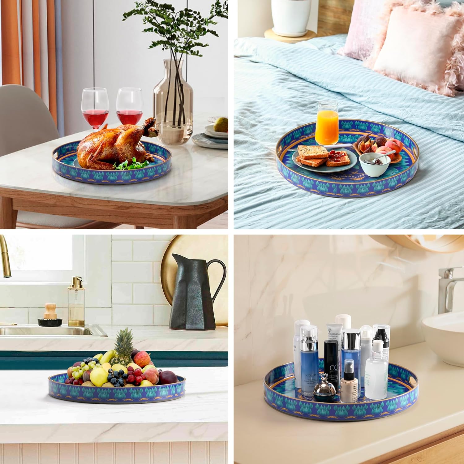 KENZY GIFTS Evil Eye Rectangular Serving Tray with Handles – Plastic Decorative Trays for Coffee Table for Ottoman, Bathroom, Kitchen and Living Room, 15.7" L x 11.8" W x 1.57" H (Round)