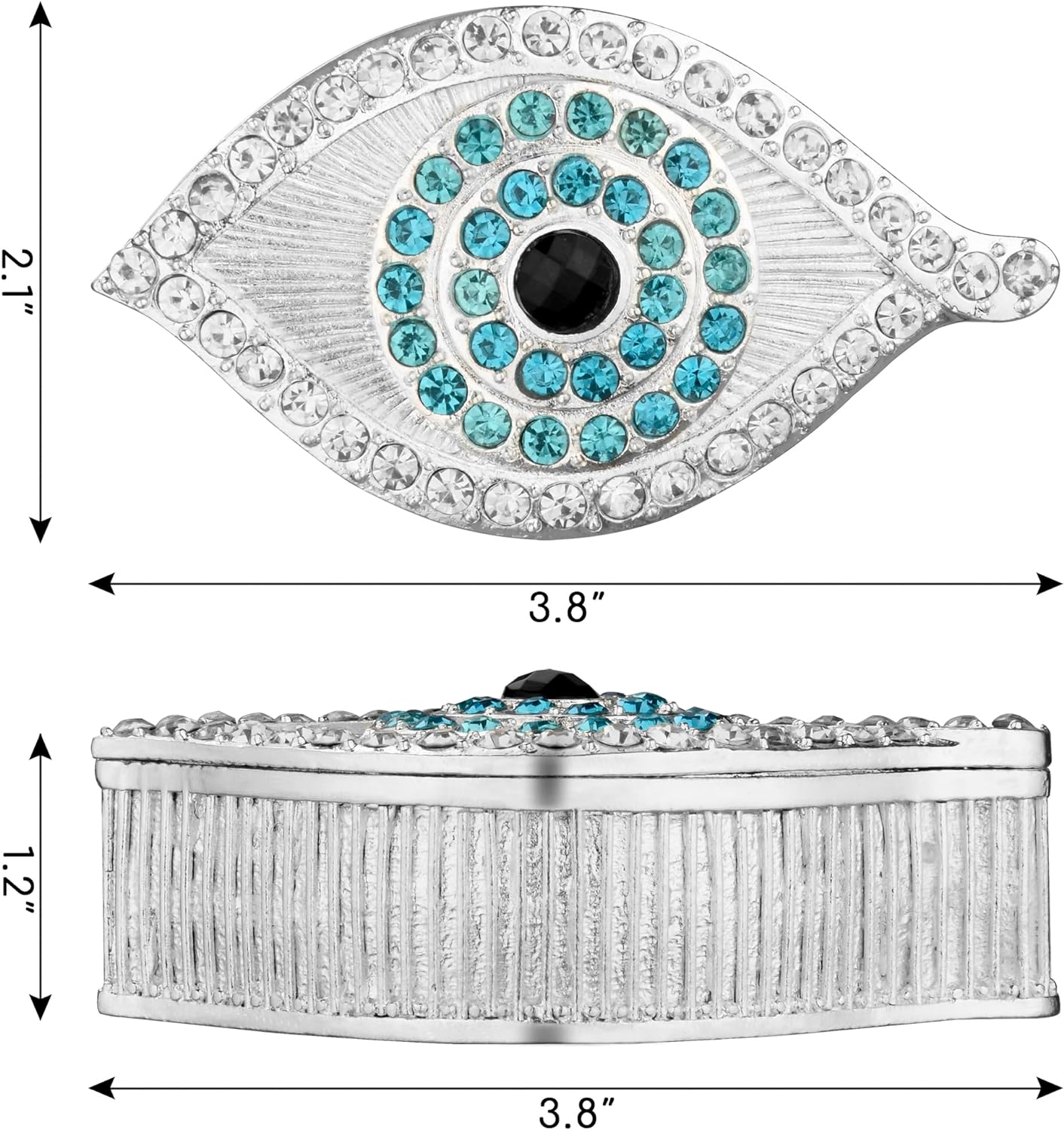 KENZY GIFTS Evil Eye Jewelry Box - Handmade Gold Keepsake Box with Magnetic Closure & Crystals - Decorative Storage for Bracelets, Necklaces, Accessories - Evil Eye Decor (Silver box)