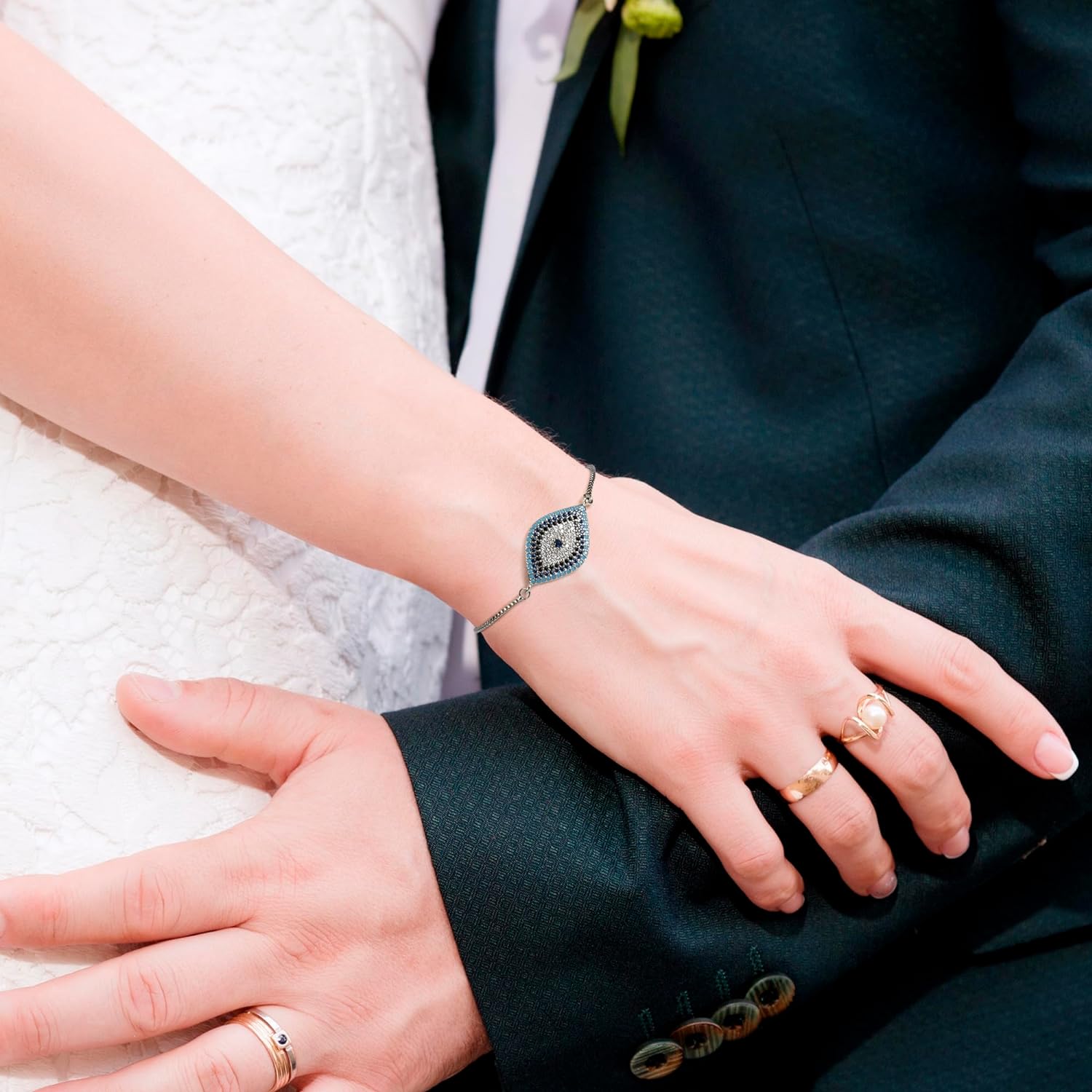 Evil Eye Jewelry Box - Handmade Gold Keepsake Box with Magnetic Closure & Crystals - Decorative Storage for Bracelets, Necklaces, Accessories - Evil Eye Decor (Silver box with bracelet)