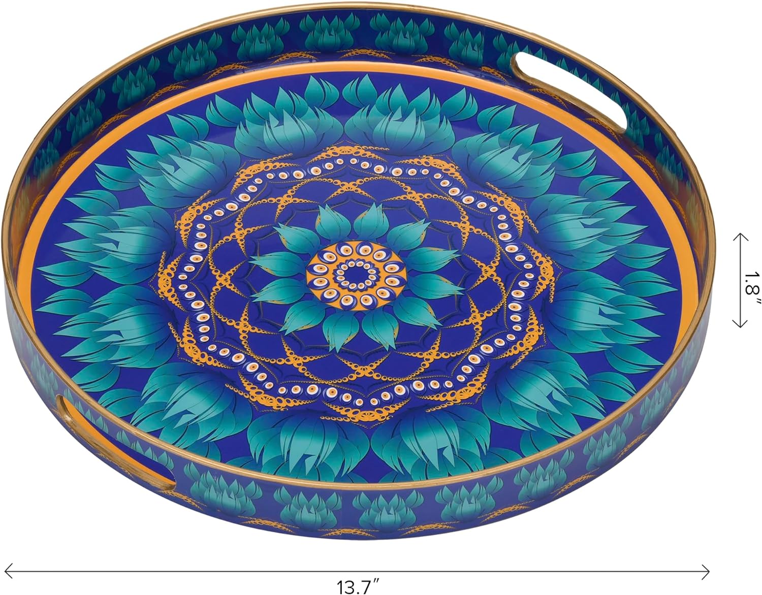 - Multi-Purpose tray: The unique pattern and design of this tea tray can not only be used as a storage or display tray, but also as a perfect evil eye decor with a classy and modern look. It can also serve as a perfume tray, makeup tray, serving tray, or office organizer tray