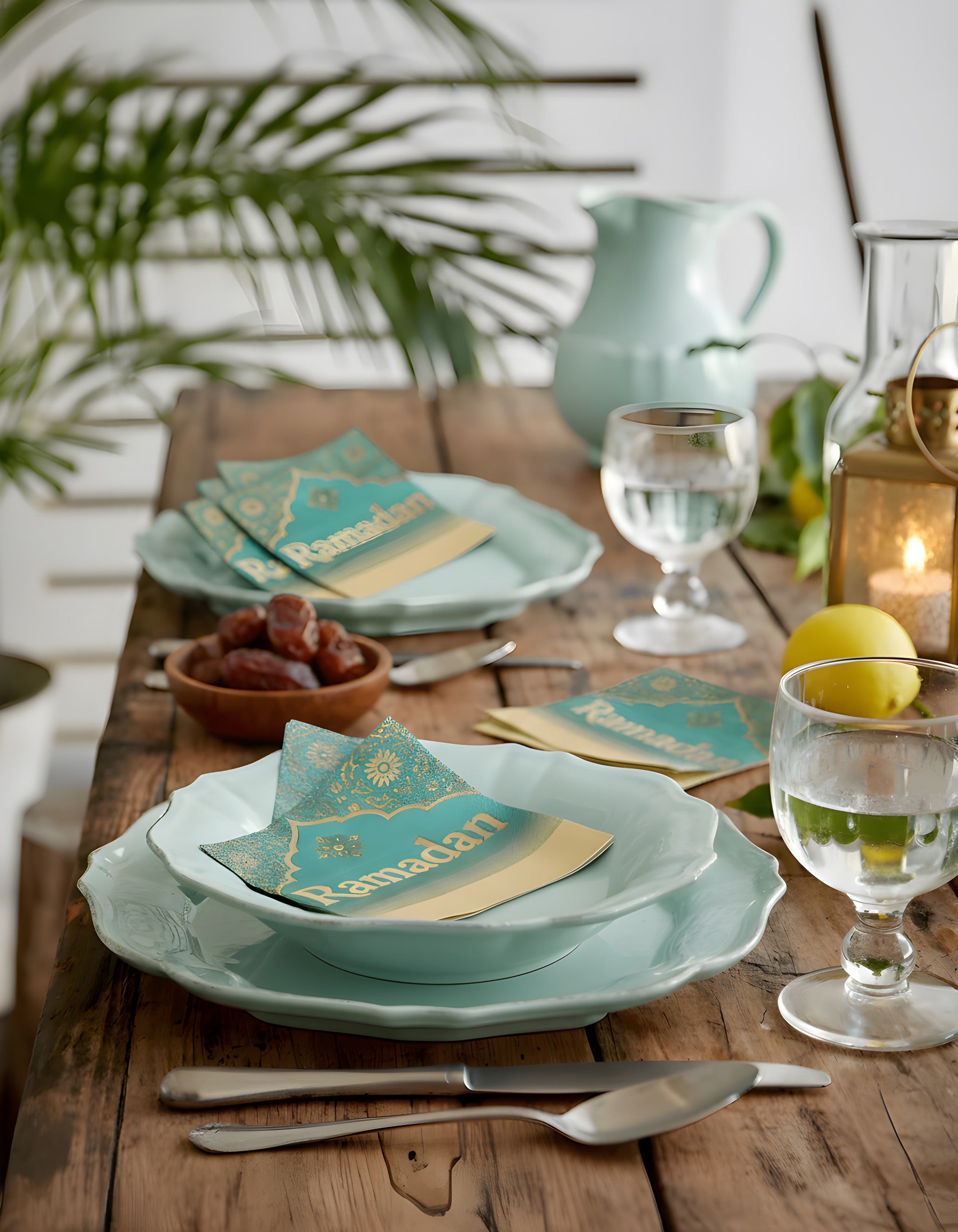 Elevate your Ramadan table with our beautifully designed Ramadan Collection luncheon napkins. Featuring rich turquoise tones with elegant gold detailing and a soft linen-like texture, these napkins add warmth and sophistication to any iftar or suhoor gathering.